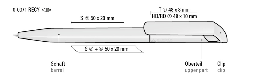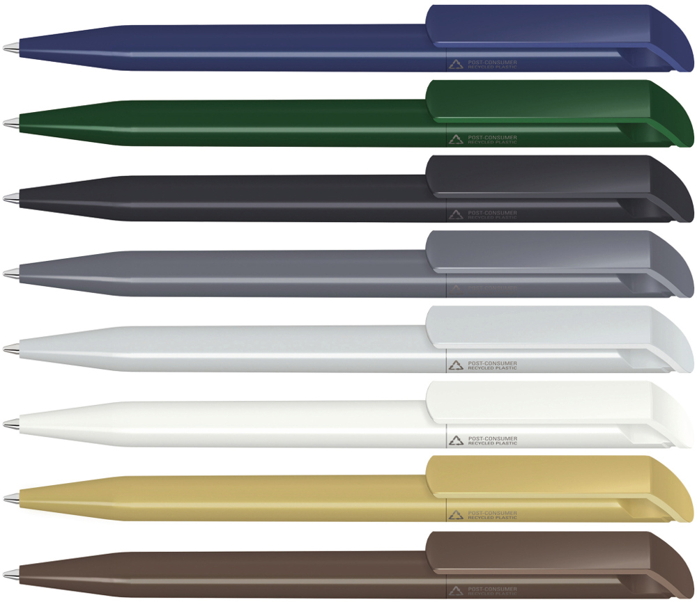 Drehkugelschreiber mit gedeckt glänzendem Gehäuse aus 100% recyceltem Post-Consumer-Kunststoff. mehr