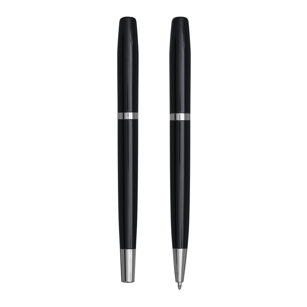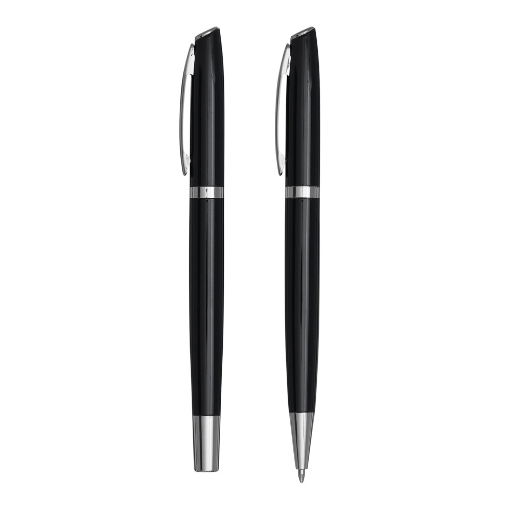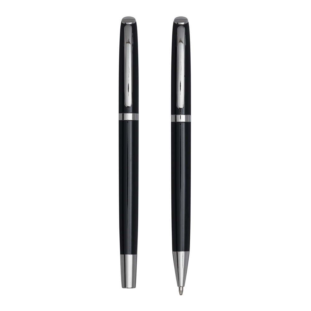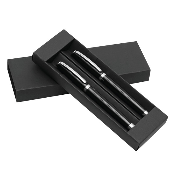 Schreibset ALPHABET, 2-teilig: bestehend aus Kugelschreiber mit Drehmechanismus (schwarzschreibend) sowie Tintenroller mit Verschlusskappe mit Clip (schwarzschreibend), beide Schreibgeräte mit Aluminium-Schaft, in Box