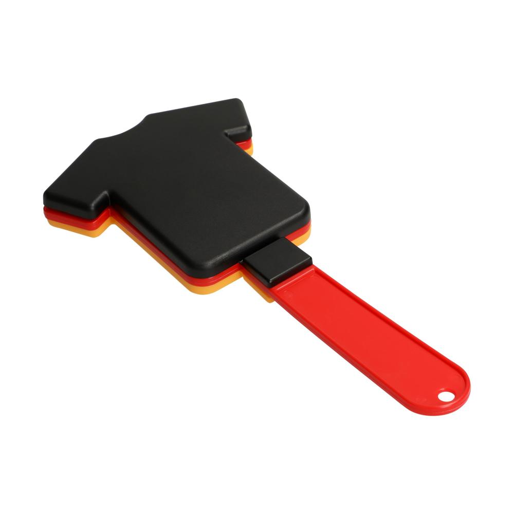 Das ultimative Fan-Equipment! Klapper (05093), Trillerpfeife (03636), Fanschminke (07270), Tröte (03642), Autofahne (07784) und aufblasbare Winkehand (07440) im Trikotbeutel (07264).
