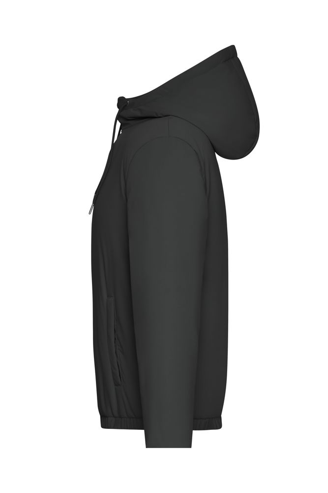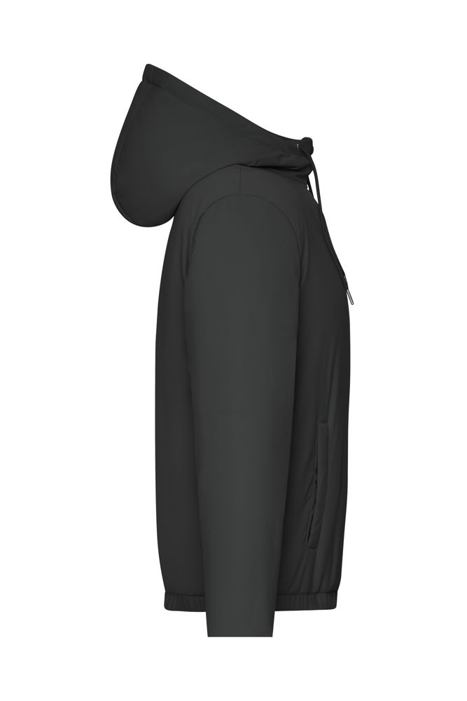 Angenehmes Tragegefühl durch leichtes Material und weiche Sugenro-Wattierung (recycelt) Wasser- und schmutzabweisend Angeschnittene Kapuze mit Kordel Gummizug an Bund und Armbund 2 seitliche Eingriffstaschen mit Druckknopf-Verschluss 1 Reißverschluss-Innentasche Reißverschluss zur Rückenveredelung 1/2 Oberweite: 51 cm Länge ab Schulter: 63 cm Ärmel Länge: 62 cm OEKO-TEX® Standard 100 (25.HDE.51239) wattiert GRS Standard Sugenro® GRS Insulation Kapuze