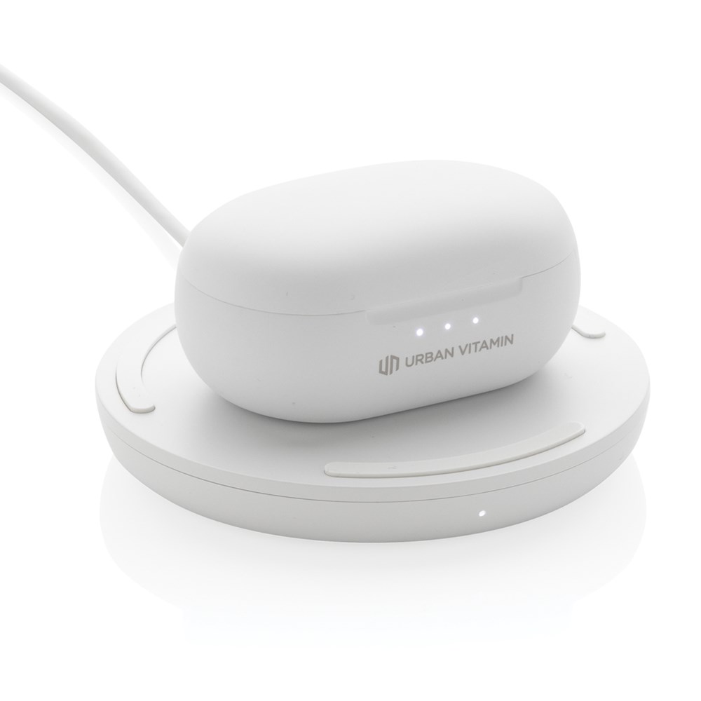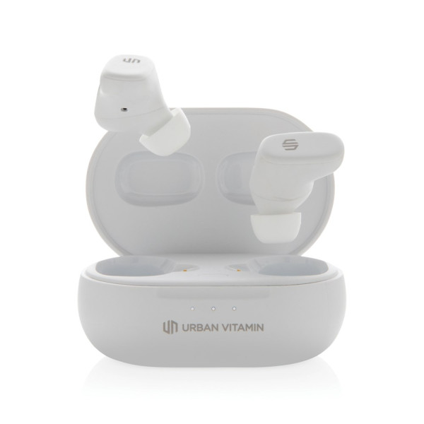 Der beste Klang beginnt mit der besten Stille. Die Ohrhörer sind mit Active Noice Cancelling (ANC) ausgestattet, um externe Geräusche zu blockieren, während Sie Ihre Lieblingsmusik, Ihren Podcast oder Ihr Lieblingsvideo hören. Dank Umgebungsgeräuschunterdrückung (ENC) sind auch Ihre Telefonate kristallklar, da Umgebungsgeräusche während Ihres Anrufs herausgefiltert werden. Dank der Touch-Control-Funktion müssen Sie nur auf den Ohrhörer tippen, um Anrufe anzunehmen. Das IPX 5-Rating macht die Ohrhörer wetter-, schweiß- und spritzwassergeschützt. Die komfortablen All-Day-Ohrhörer haben bis zu 5 Stunden Hörzeit und das Ladeetui ermöglicht bis zu 20 Stunden Wiedergabe. Wenn Sie das Lade-Etui aufladen möchten, stecken Sie einfach das Type-C-Kabel ein oder legen Sie es auf ein kabelloses Ladegerät. Urban Vitamin Artikel werden ohne PVC hergestellt und in einer 100% plastikfreien Verpackung verpackt.