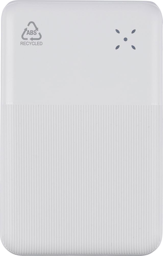 Powerbank aus recyceltem ABS mit 20.000 mAh Lithium-Ionen-Akku und 22,5 W Schnellladefunktion. Mit Typ-C-Ein- und -Ausgang, Typ-A-Eingang und LED-Anzeige für den Akkustatus. Ausgestattet mit Schutz gegen Überhitzung, Kurzschluss, Überspannung und Überstrom. Inklusive Etikett auf der Rückseite mit dem Logo aus recyceltem ABS. Einzeln verpackt in einem braunen Karton mit Seidenpapier im Inneren.